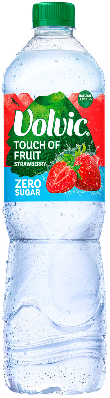 Eau minérale naturelle Volvic (99,8%), acidifiant (acide citrique), arôme naturel de fraise avec d'autres arômes naturels, conservateur (benzoate de potassium), édulcorants (acésulfame K, sucralose).
