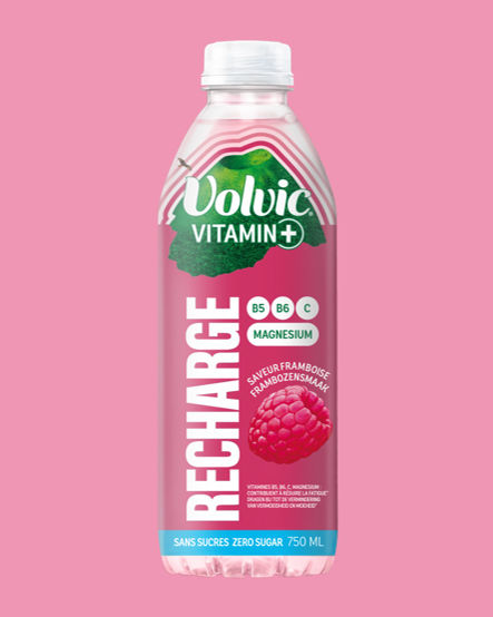 Boisson à base d'eau minérale naturelle Volvic enrichie en vitamines et magnésium, avec des arômes naturels