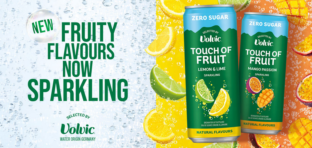 Ontdek de nieuwe Touch Of Fruit Sparkling, zonder suiker, met minder dan 5kcal per blikje.