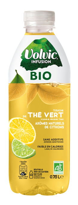 Volvic Infusion bio vleugje groene thee – natuurlijke citroenaroma’s is de nieuwste toevoeging aan de Volvic-familie van biologische infusionsoorten. Een drank met bio citroensap, een infusie van bio groene thee en bio extracten.